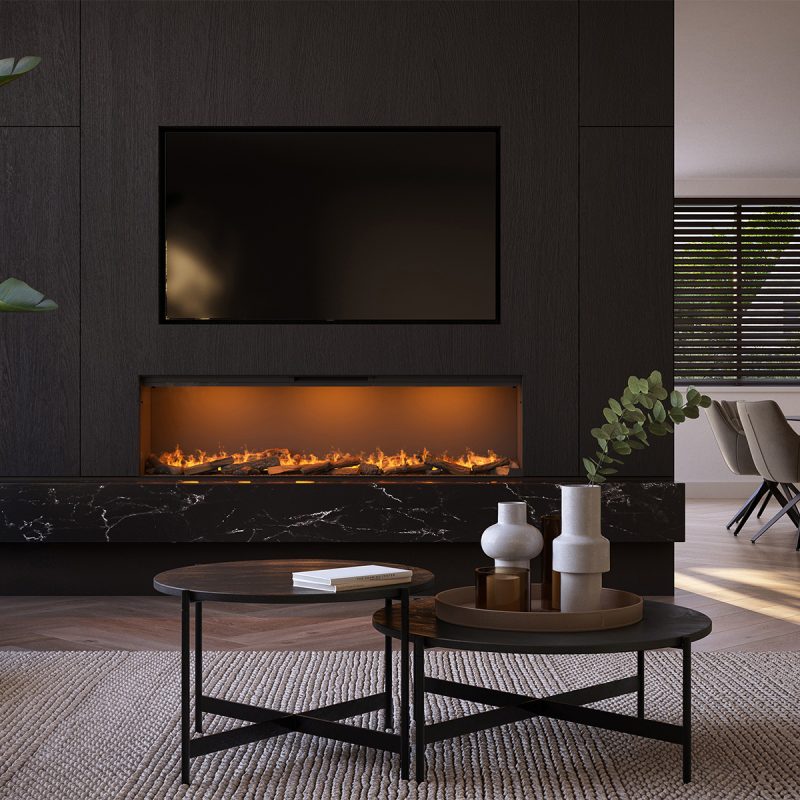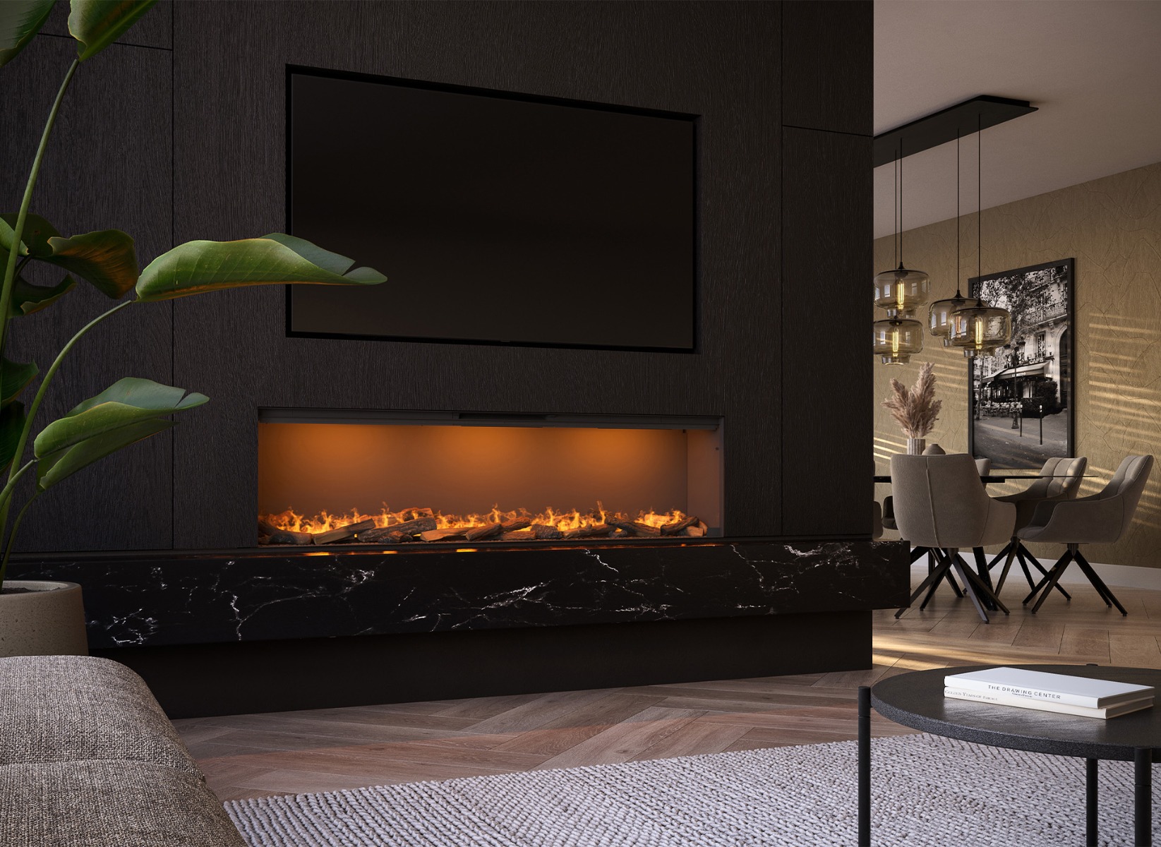 De nieuwe e-Slim Linear 1700/450 l van Faber; Een sfeervolle en stijlvolle toevoeging aan uw woonkamer. De Faber e-Slim Linear 1700/450 l elektrische haard beschikt over bovenverlichting voor extra verlichting op het vuur, welke in is te stellen in vijf verschillende kleuren. Zo is er voor ieder moment een geschikt sfeerlicht in te stellen. Het bedienen van de haard wordt u zeer gemakkelijk gemaakt door de bijgeleverde afstandsbediening en de app.